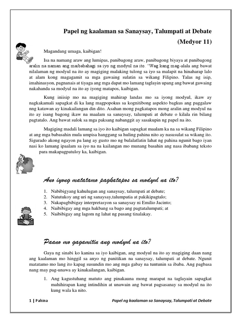 Save Save Modyul 5 Pagsulat Ng Talumpati For Later. Sanaysay Debate at Talumpati ni Paz M. Ito ay may dalawang uri.