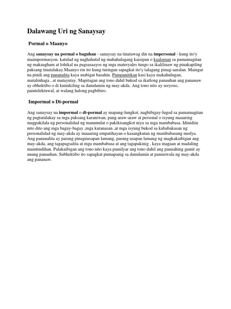 Ng Sanaysay Na Pormal Ay Ang Uri Ng Sanaysay Na Nagbibigay Ng Impormasyon Pdf