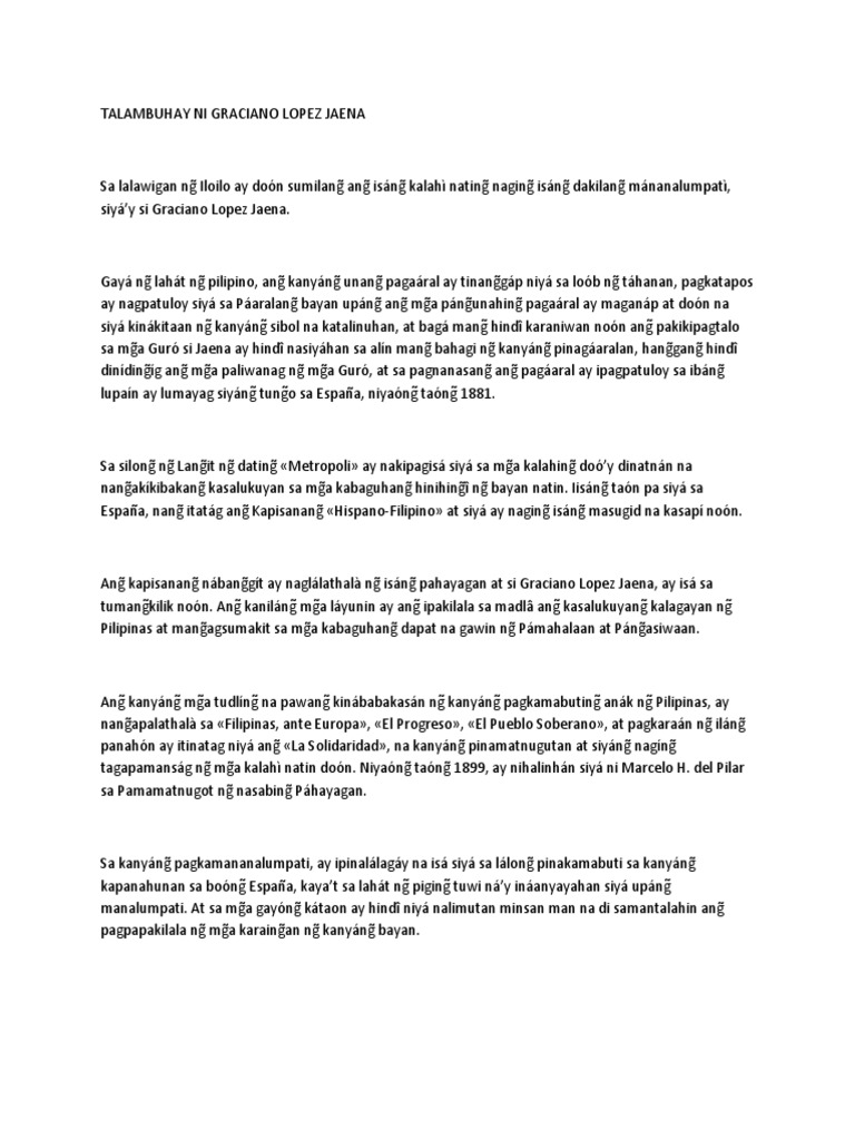 Talambuhay Ni Graciano Lopez Jaena Pdf